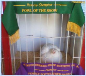 Mundubbera Show Society - 7th May, 2011. Chamion Female Soft Feather Bantam & Reserve Champion Fowl in Show |